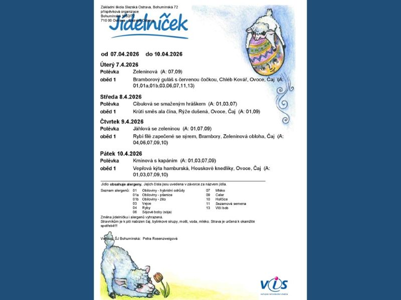 Aktuální jídelníček - 06. - 10.04.2026