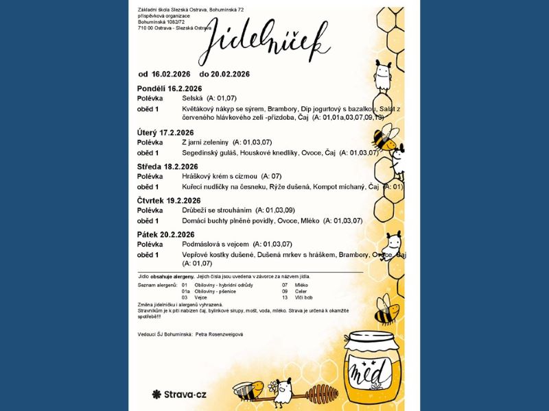Aktuální jídelníček - 02. - 06.02.2026 // 16. - 20.02.2026