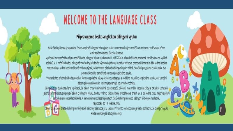 Pro školní rok 2026/2027 plánujeme přijmout do prvních tříd 70 žáků, pokud bude zájem rodičů, zařadíme některé žáky do tříd s rozšířenou výukou jazyků.