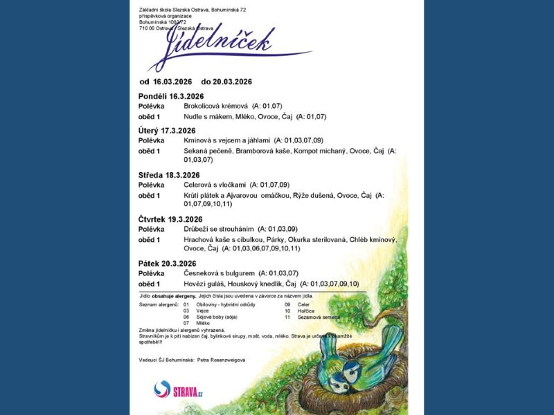 Aktuální jídelníček - 16. - 20.03.2026