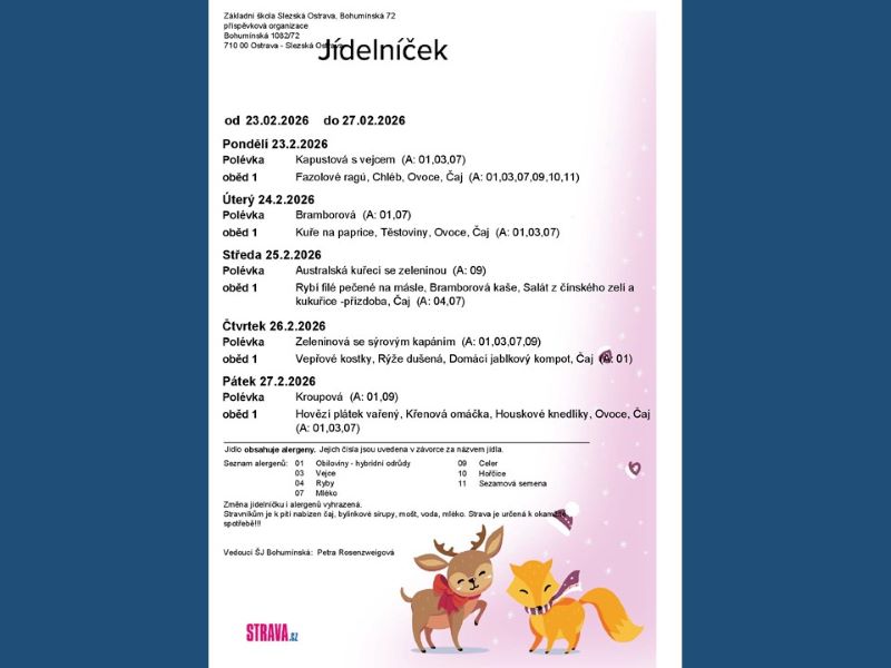 Přihlašování / Odhlašování stravy - každý individuálně - pracovní den předem do 11:00 hod - www.strava.cz