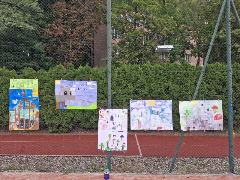 První úkol na sebe nenechal dlouho čekat. Kluci a holky měli vytvořit vlastní minecraftový svět, na kterém budou postupně „stavět“ své město. Každé oddělení mělo týden na společnou domluvu, plánování i samotné tvoření. Výsledkem se staly originální a nápadité obrázky, které překvapily svou pestrostí i kreativitou.