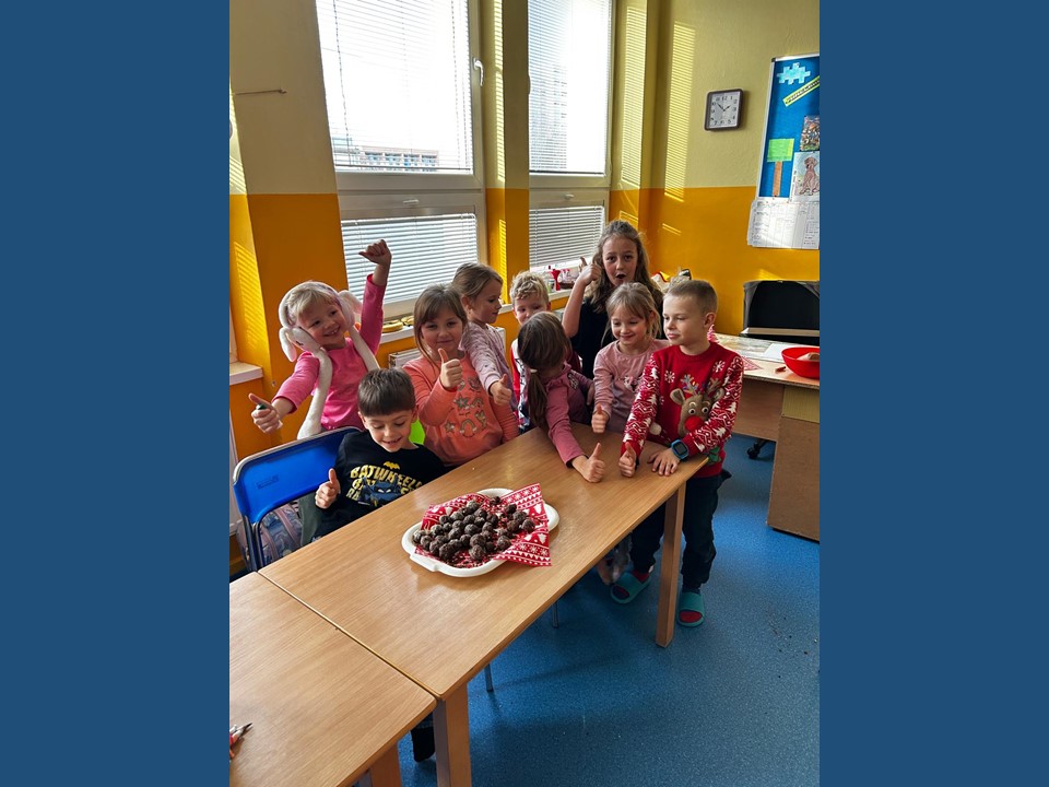 Na závěr si každé oddělení vybralo, komu své krásné dárečky předá. Některé děti se rozhodly potěšit zaměstnance školy jako poděkování za jejich práci, jiné obdarovaly babičky a dědečky v Domově pro seniory Kamenec, další udělaly radost paním prodavačkám v nedalekém obchodě, policistům na místní stanici nebo lidem, které jsme potkali cestou kolem školy nebo v parku Komenského sady.